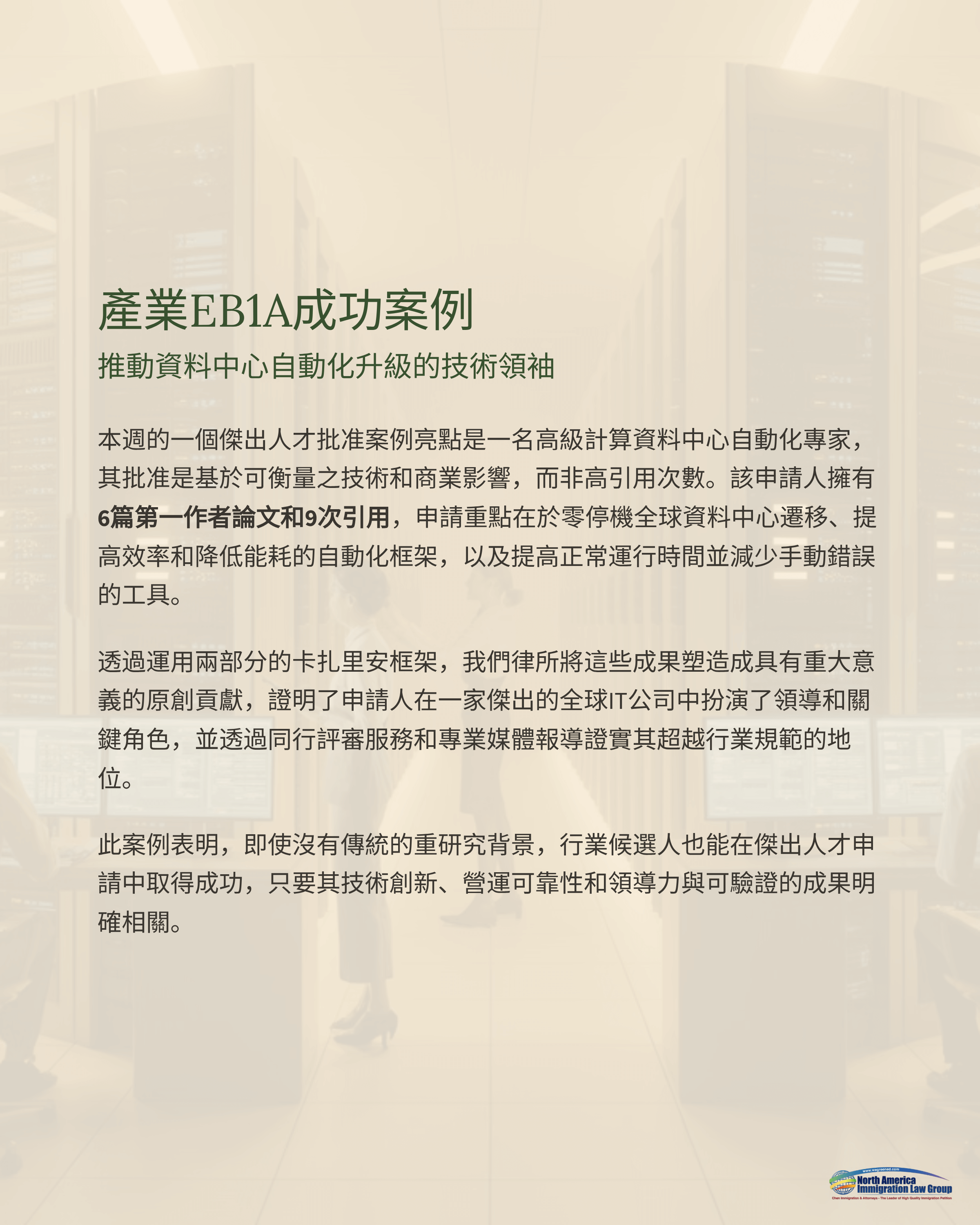 產業界EB1A成功案例:推動資料中心自動化升級的技術領袖