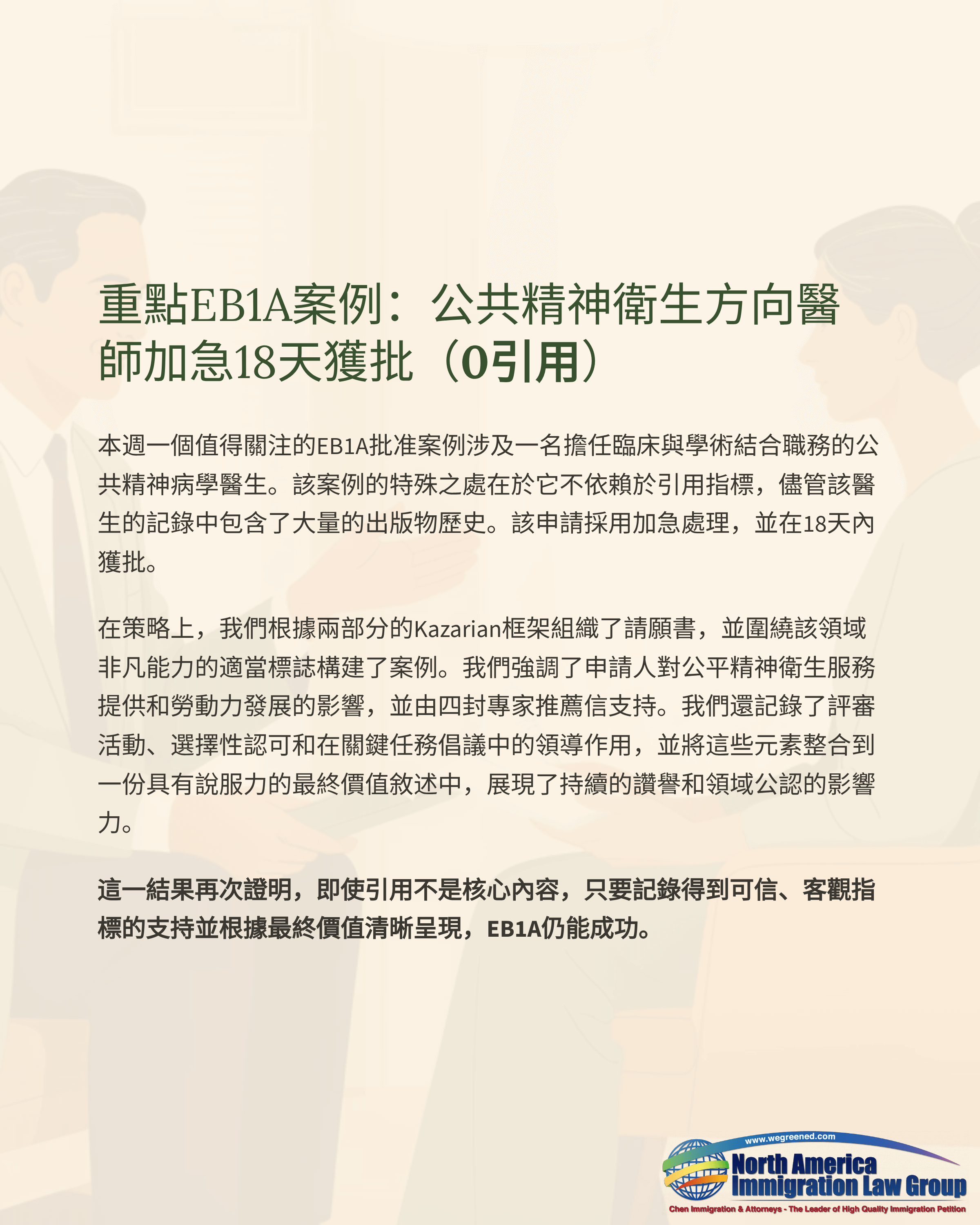重點EB1A案例:公共精神衛生方向醫師加急18天獲批(0引用)