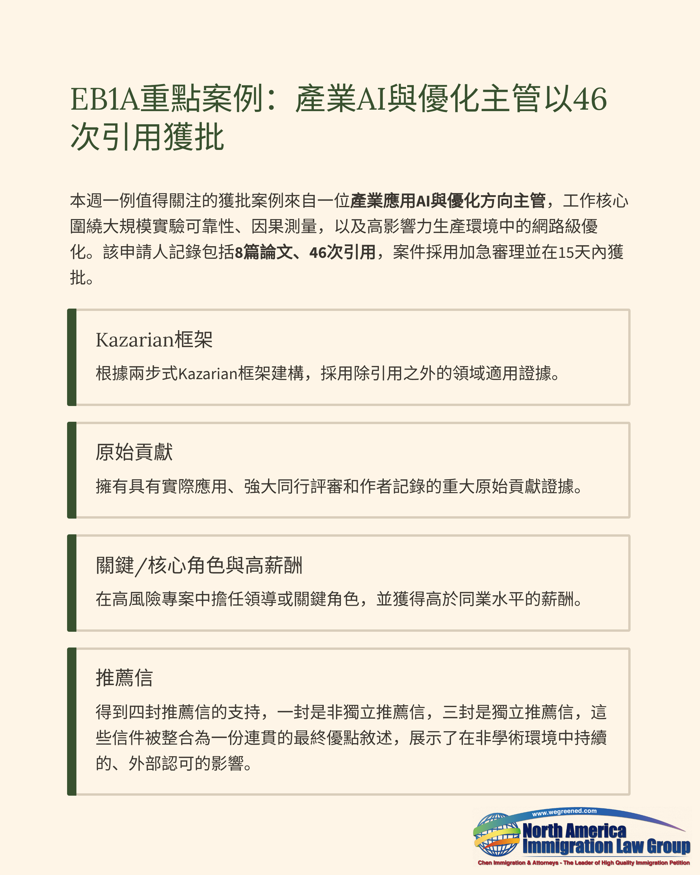 重點EB1A案例:產業界AI與優化負責人以46次引用獲批